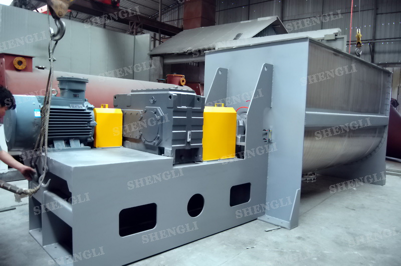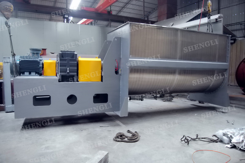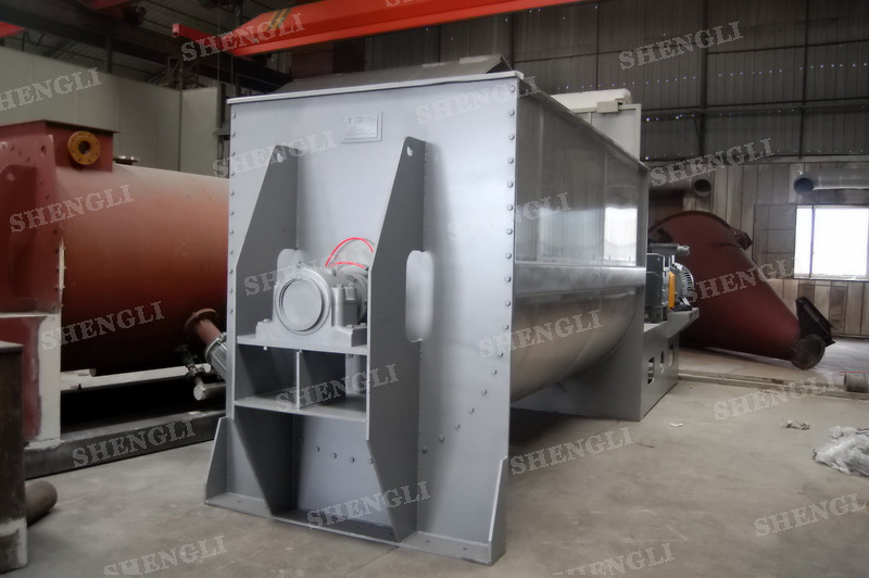 工作原理:螺帶式混合機采用U型筒體,內(nèi)裝平行主軸,主軸上安裝正反雙向的盤條螺帶,不同維度螺帶分內(nèi)螺帶與外螺帶,物料在螺帶的驅(qū)使下反復參混,能夠快速高效的混合。