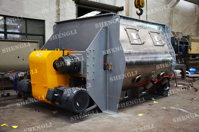 工作原理:臥式雙軸攪拌機采用雙U型筒體,內(nèi)裝平行的雙主軸,主軸設(shè)有對稱的多組槳葉,其雙軸的運行軌跡部分重合形成嚙合空間,雙軸在受雙電機同步驅(qū)動,同步的對稱向外翻攪物料,致使物料能夠達到瞬間失重點,該設(shè)備具備高效物料無差別的混合能力。